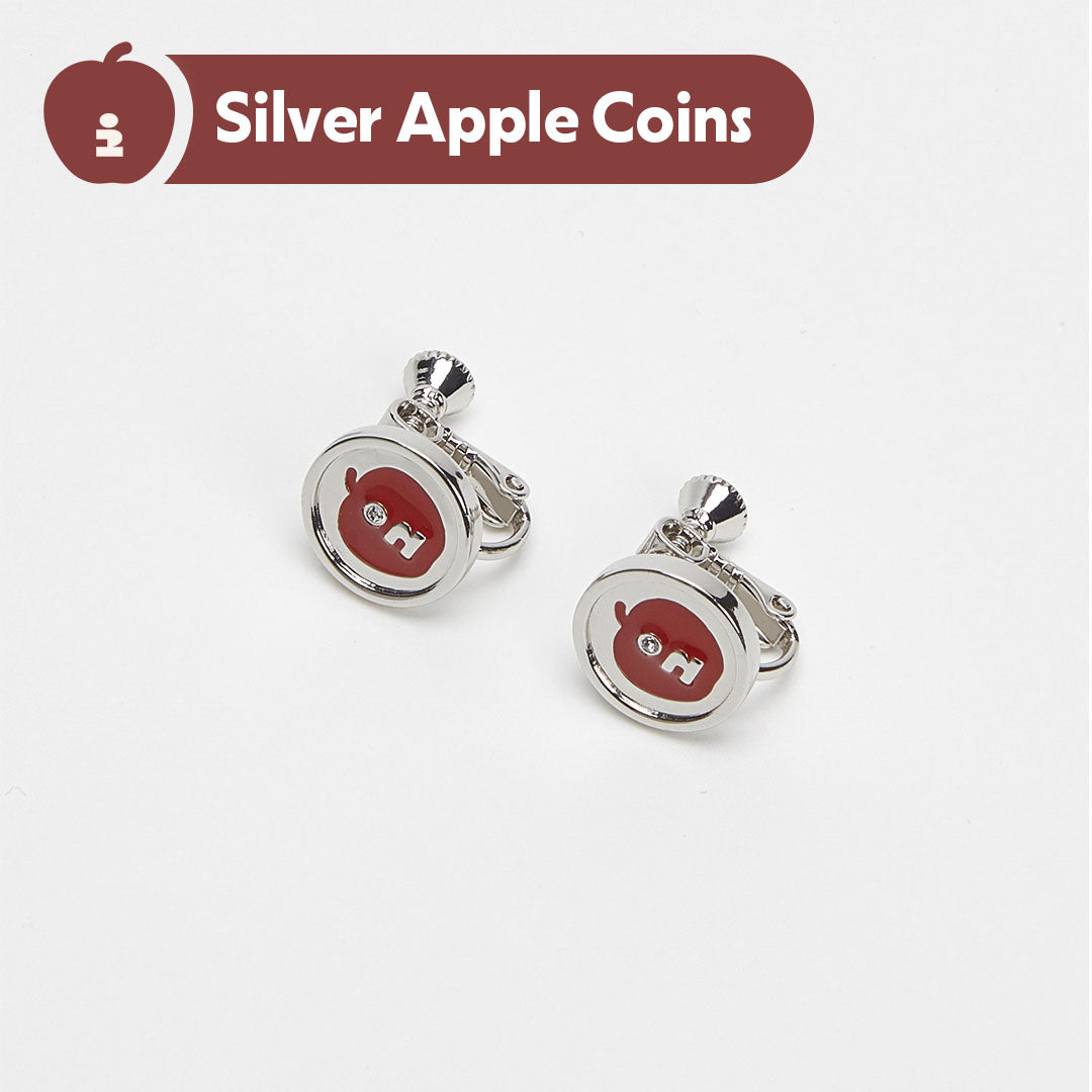 Tagi. Gold Coin Smiley Apple Earrings/Ear Clips